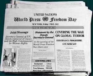53日是世界新闻自由日(World Press Freedom Day。世界新闻自由日是由联合国创建,旨在提高新闻自由的意识,并提醒政府尊重和提升言论自由的权利,该权利铭记在世界人权宣言第19条中。201353日是“世界新闻自由日”设立20周年。联合国52日举行特别活动纪念。