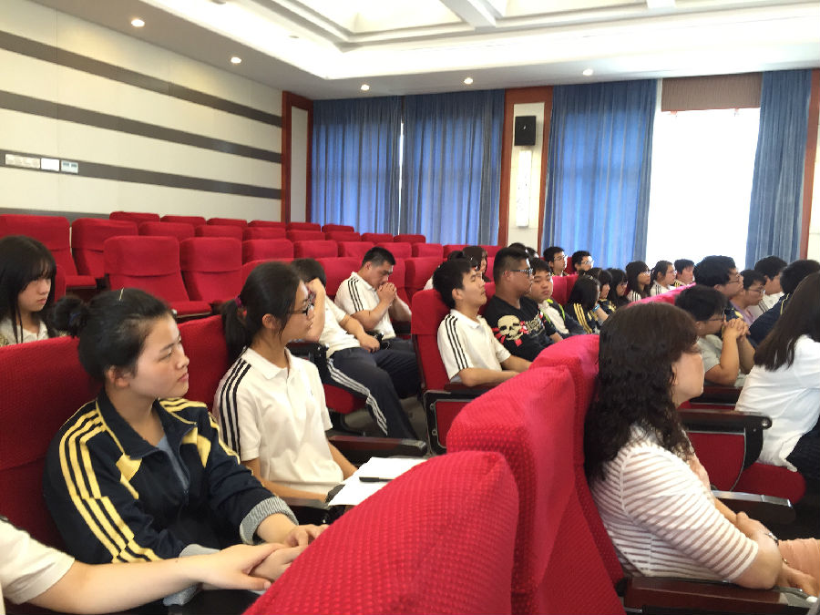 2016年5月31日,阶梯教室,上海新闻出版职业技术学校14级中高贯通班认知实训总结会议正在进行。