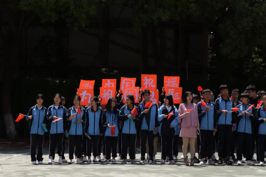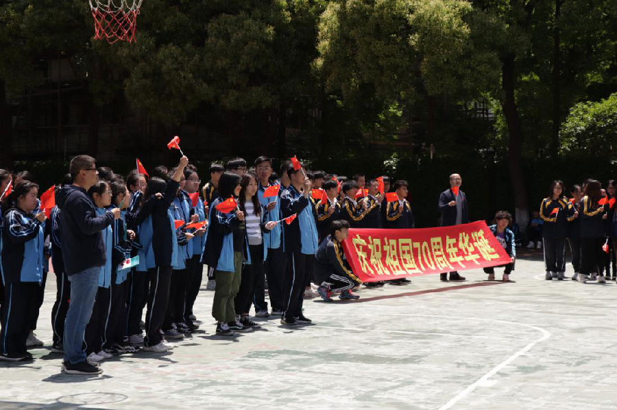 本次开幕式还结合了建国七十周年,为祖国母亲祝福、喝彩的方面所开展。大家手上都拿着小红旗,其中一个班级举着“为中国祝福,为祖国喝彩”的字、一个班级拉着“庆祝祖国70周年华诞”的横幅。