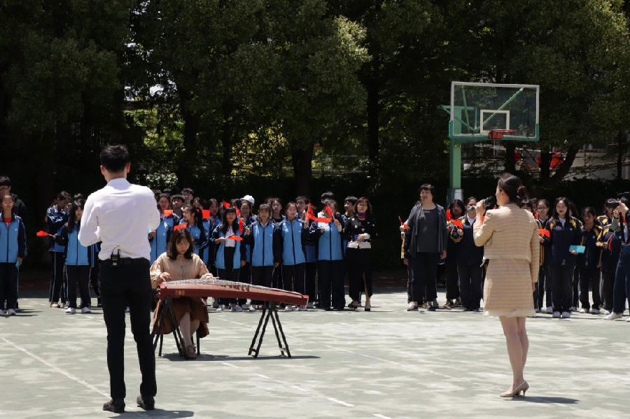启动仪式开始,响起了“我和我的祖国”这首歌。两位老师从司令台开始唱,各班级随着歌声也走进操场。等同学们站好慢慢下来走进操场,其中还有弹古筝老师的琴音配合。