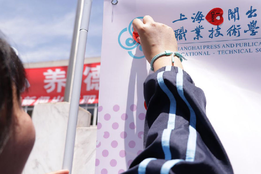 最后,大家都拿着“我爱中国”的心形粘纸,贴在我们设立的板块上。活动圆满结束。