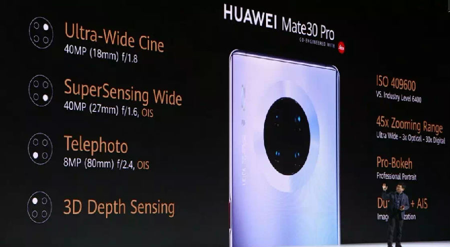 又到了华为最为强大的相机环节,Mate30Pro使用了更为强大的四摄系统,ISO更是高达409600,并且支持45倍变焦。由于采用了RYYB CMOS,更多的进光量可以使得夜晚拍照更为强大。