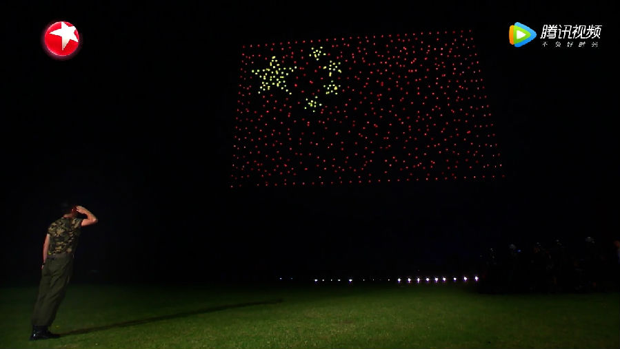 下面这一场《中国达人秀》史上人数最多的表演。梦想观察员们来到户外会场,700台无人机热血集结,在夜空中冉冉升起,随后不断变换队形,从歼20战斗机,到蛟龙号、长征火箭、天宫一号,再到最后的“70”与国旗图案,向全世界秀出属于中国的气势,也为祖国70周年国庆送上美好的祝福。激昂的表演让现场所有人都流下了感动的泪水,为祖国的强大而自豪。回到达人秀的舞台,表演指挥官石哲元说起自己的故事,身为武警仪仗队成员的他参与过香港回归的升旗仪式,即使退伍后也忘不了这面五星红旗。军人世家出身的杨幂也为之产生了深深的共鸣,于是大力拍下了黄金按钮,让全场为五星红旗金光闪耀。