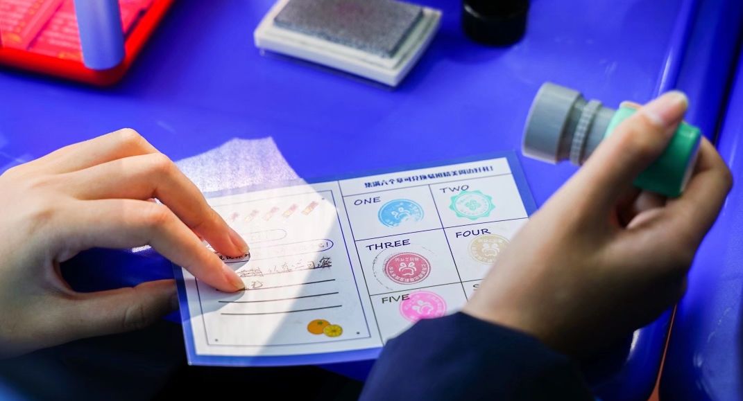 在图书馆前的“游戏镖靶”游戏,被学生称为最难游戏。每人三次机会,站在距离粘板五米的地方投球。分数累积到十分,即为过关。在游戏进行中,不少同学因为用力过猛飞镖常常超出距离靶子有一段距离的地方。这时,多数学生会选择把自己丢到远处的飞镖拾回来,不想麻烦工作人员。为此,对于这些学生当场就给予适当的表扬,以及感谢。希望他们以后也能保持这一份“初心”。