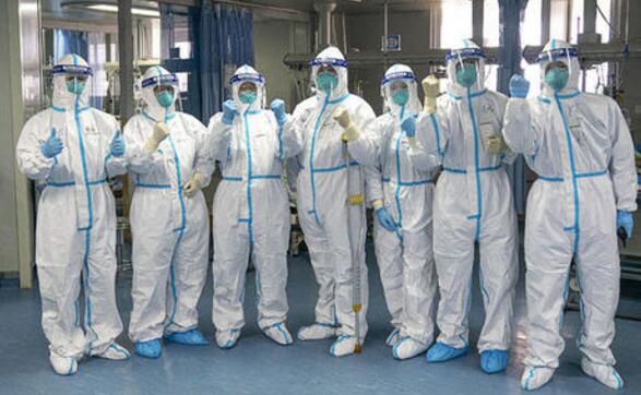 还有医护人员们他们不分年龄大小、不论男女有别,每人每天至少在重症监护室连续工作6小时。当他们走出重症监护室时,满脸都是防护罩留下的印痕,衣服、鞋子大多都被汗水浸透。他们用生命守望生命!