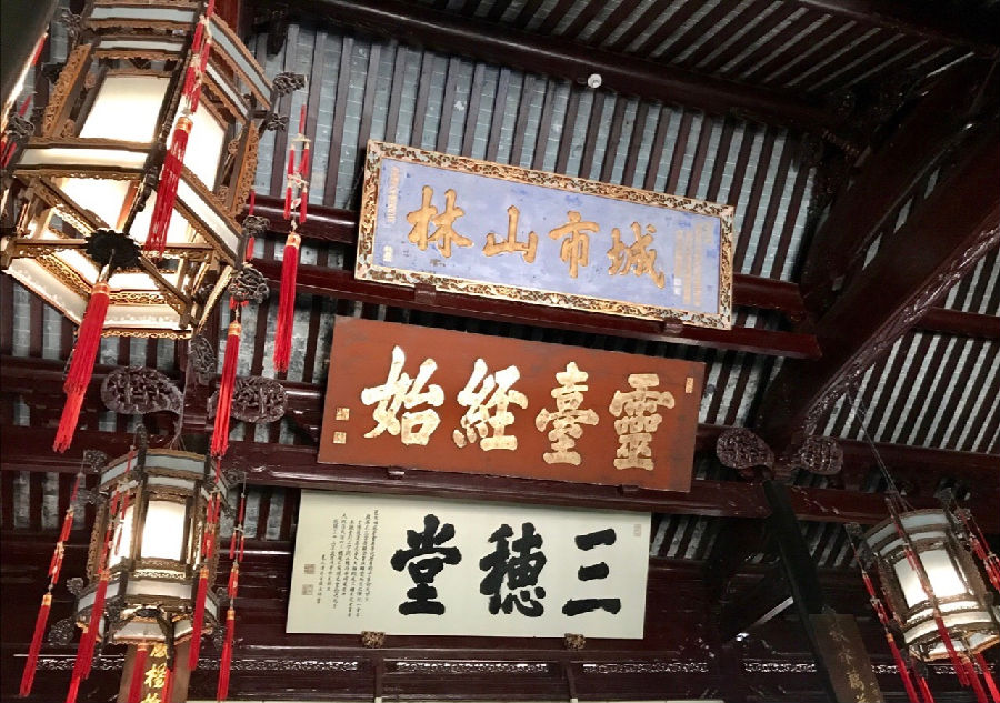 三穗堂后面是仰山堂,堂上是卷雨楼。在堂中楼上,都能观赏那假山碧水。真是豫园绝景。
