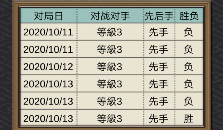 由于将棋复杂的规则,上手也是有些许难度。笔者也是近期才开始学习将棋,所以还不算熟练。下图是我在某将棋软件上的对局记录,难度三级,先手,成绩五负一胜2333。。。