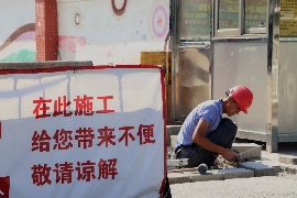 与此同时还有一位城市的美化师也在默默地做着他的事,顶着大太阳将原来坑坑洼洼,尘土飞扬的泥土地穿上了新的衣服。