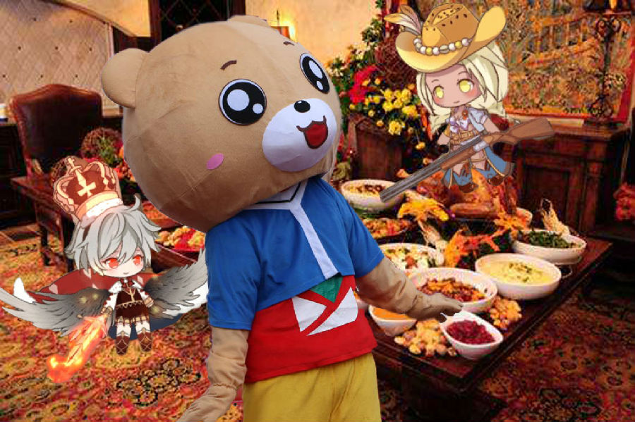 欢迎来到感恩节奇妙宴会,你的任务就是学习感恩节的知识哦,走吧庶民。火鸡对熊熊熊行了一礼,邀请道。我不是庶民啦,我叫熊熊熊!熊熊熊非常不爽这个奇怪的称呼,出声纠正火鸡的称呼。行行,熊熊熊,走吧。