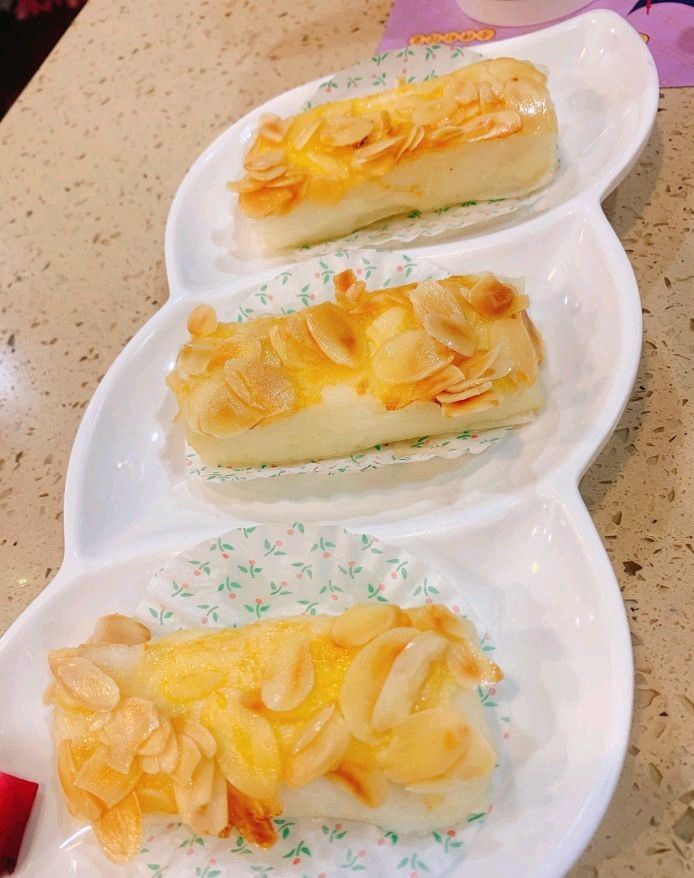 这道菜我没看到多少人推荐,但是这道在我心里简直是可以和金枕榴莲酥并排第一的,喜爱奶制品和油炸制品的千万别错过这道菜。金黄酥脆的外衣上点缀着杏仁片,内里是香滑细腻的奶冻口感的牛奶,一口下去杏仁的香酥带着牛奶的香气,简直绝了。