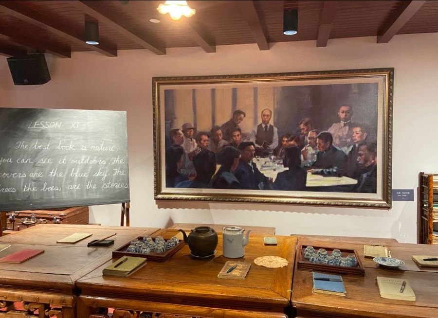 距今九十六年前,上海虹口召开的第四次全国人民代表大会开创了我党的建设新阶段,在那里,参会人员第一次提出两人无产阶级在民族革命运动中的领导权,坚持反对帝国主义,由此确立我们党在大革命时期的地位与目标。这样伟大精神就在弄堂深处的三层楼房中诞生,虽原址早在日军侵华战争中被夷为平地,但四大会址纪念馆逼真还原了阁楼形态,将四大的历史回响永留传唱。这处还原阁楼就布置在纪念馆的核心处,黑板与文件、砚台与笔墨,994名代表全国党员在12天的隐秘会议下,将大革命推向前所未有的新高度。