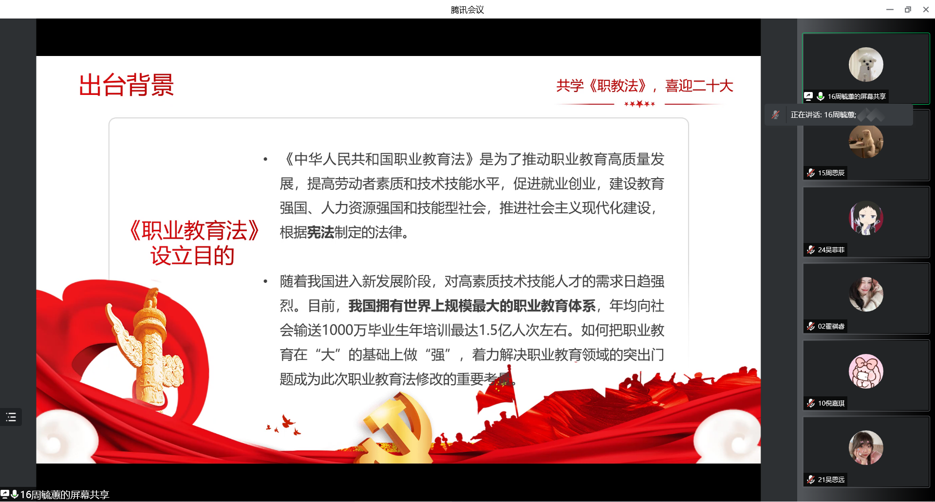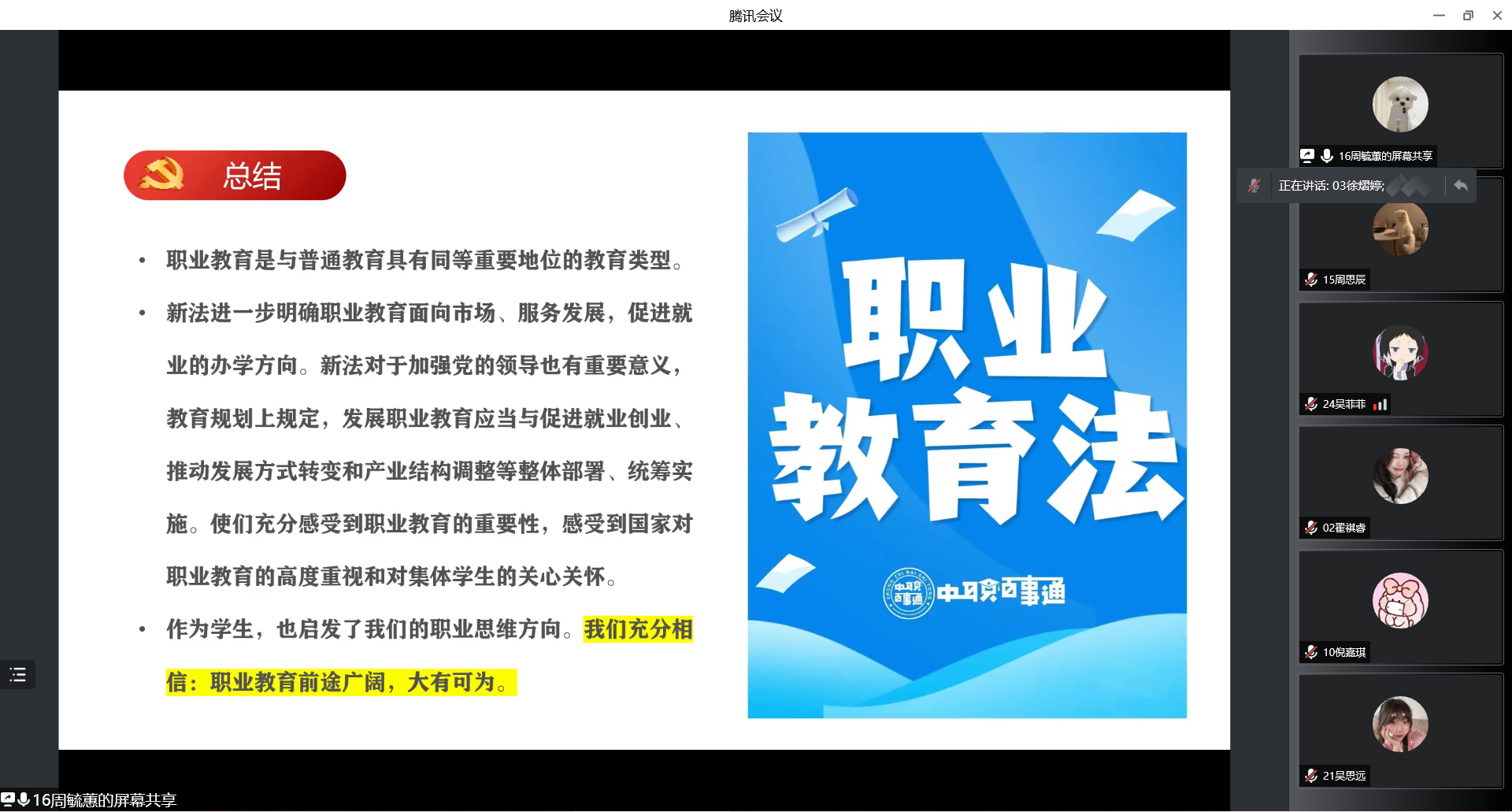 论坛>>>1752001“共学《职教法》“主题班会