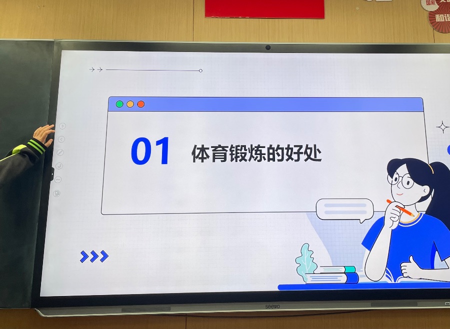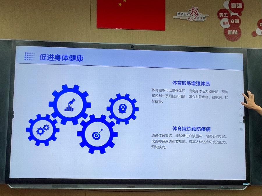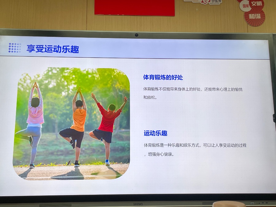 2024.5.21开展了以健康生活方式与体育锻炼为主题的班会课,分为体育锻炼的好处,体育锻炼对身体的重要性,体育锻炼的目的,体育赛道精神、首先是奋斗精神和如何健康生活为小标题开展,介绍了1.减少衰老危险。体育锻炼可以减少过早进入衰老期的危险,增强体质。2.预防疾病。体育锻炼是增强体质的最积极、有效的手段之一,能减低患病机会。 3.改善机能状況。体育锻炼有利手人体骨路、肌肉的生长,增强心肺功能,改善机能状况。4.增强适应能力。体育锻炼能提高抗病能力,增强有机体的适应能力。有助于保特肌体生命活动的正常进行。