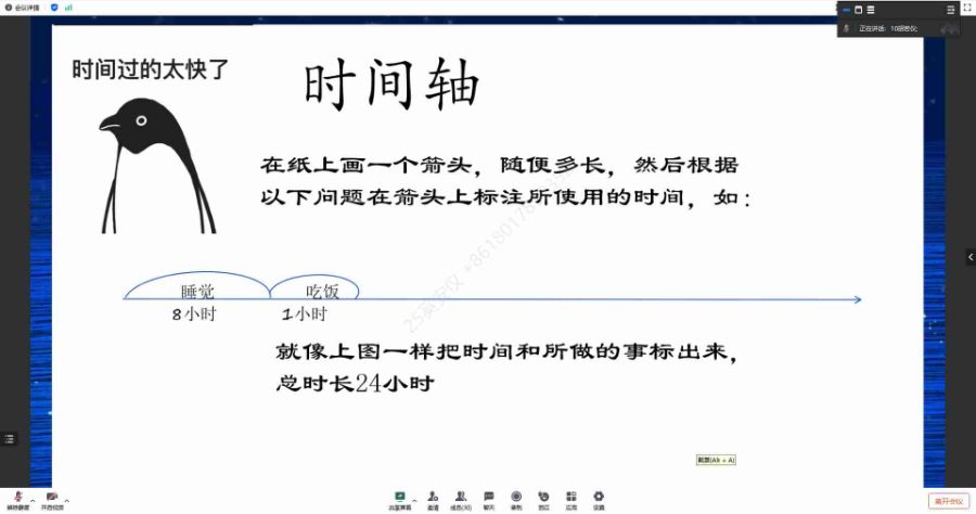 2、说一说:用一个词或者一句话来概括一下你的时间轴