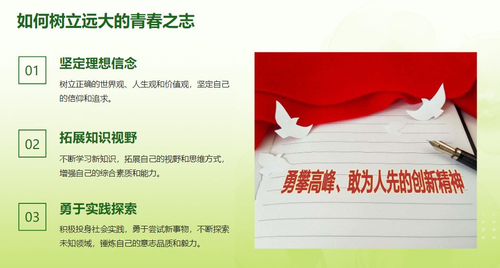 青春是成长的关键阶段,需树立正确的价值观和人生目标,将个人理想与国家发展紧密结合。