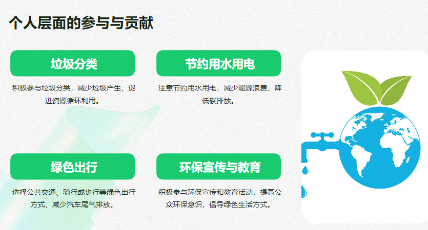 在地球家园的怀抱中,环保与可持续发展是我们共同的责任与使命。愿我们携手并肩,以绿色行动守护蓝天碧水,让清新空气与繁茂森林成为永恒。减少污染,节约资源,让每一份努力汇聚成海,推动社会向更加绿色、低碳的未来迈进。让环保理念深入人心,可持续发展成为时代潮流。