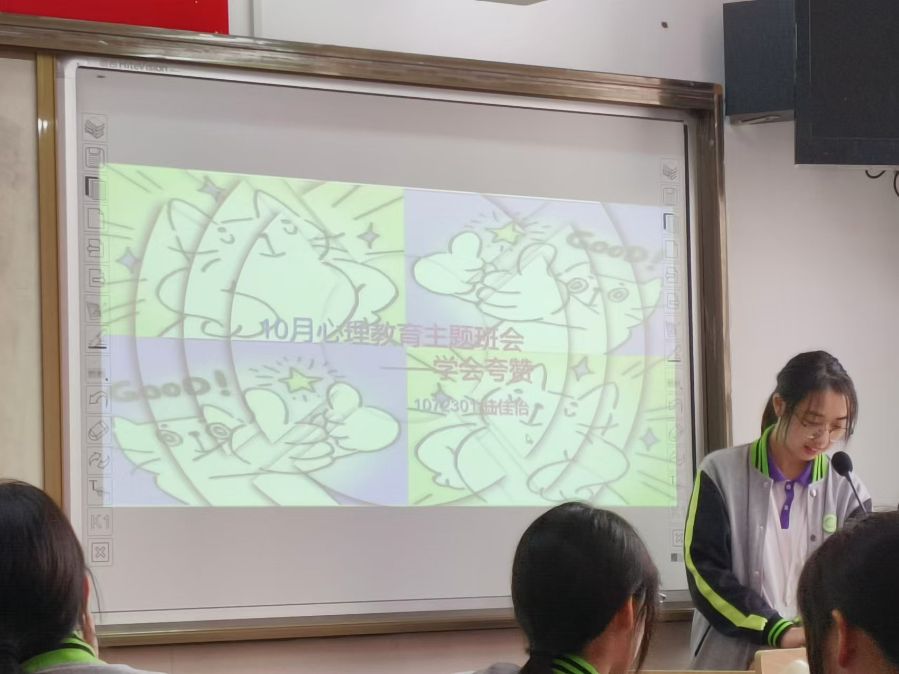 今天我们进行了心理主题班会 在紧张而多彩的学习生活中,每位同学都是独一无二的存在,拥有各自独特的才华与魅力。然而,面对学业的压力与社交的挑战,同学们往往容易忽视或低估自己的价值。本次心理主题班会旨在通过一系列精心设计的活动,引导同学们深入挖掘并展现自我闪光点,增强自信心,促进班级内部的相互理解和尊重,共同营造一个积极向上、和谐友爱的学习环境。每位同学都写了班中一位同学的闪光点,并且进行小游戏更好的认识到别人的闪光点,这次班会我们学到了很多,使我们班级更加团结,友善。