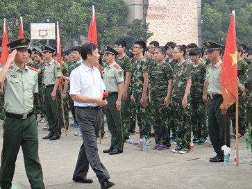 8月23日上午9时,我校14级新生在青浦锦绣园军训营操场,隆重举行军训结营仪式,校长乔刚、校纪委书记冯梅、学生处主任范荣及各专业教学部分管学生领导出席仪式,军训负责主任周川惠子主持。