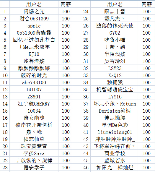 10 月8日今日话题网薪奖励名单如下,网薪均已发放。
