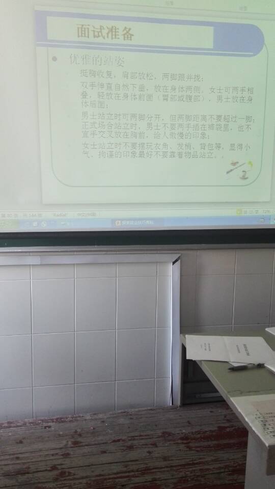 今天上午班会课,我们两个班级(1301班、1306班)一起上了一堂别开生面的面试技巧课,因为我们六月份就要去实习了,所以我们现在需要学习一些行为礼仪和面试技巧。