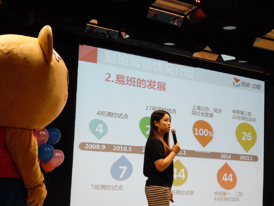 2014年,我校有幸成为了中职易班建设的第二批试点校。自那时起,我校易班工作站的建设便不曾停止,至今已有一年了。下午2:30活动正式开始。可爱的易班熊吸引了一大批同学前来参与此次活动。