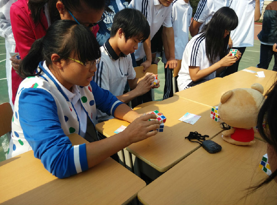 魔方转起来,一分钟拼出一个面即胜出,30秒拼出6个面的同学表示这实在是开着大炮打蚊子——毫无难度,真真是高手在民间!但这游戏挑人,对于5分钟拼不了一个面的同学而言则是噩梦,还是把目光赶紧投向别的游戏,毕竟时间有限,智商高不高的无所谓,玩儿的开心就好。